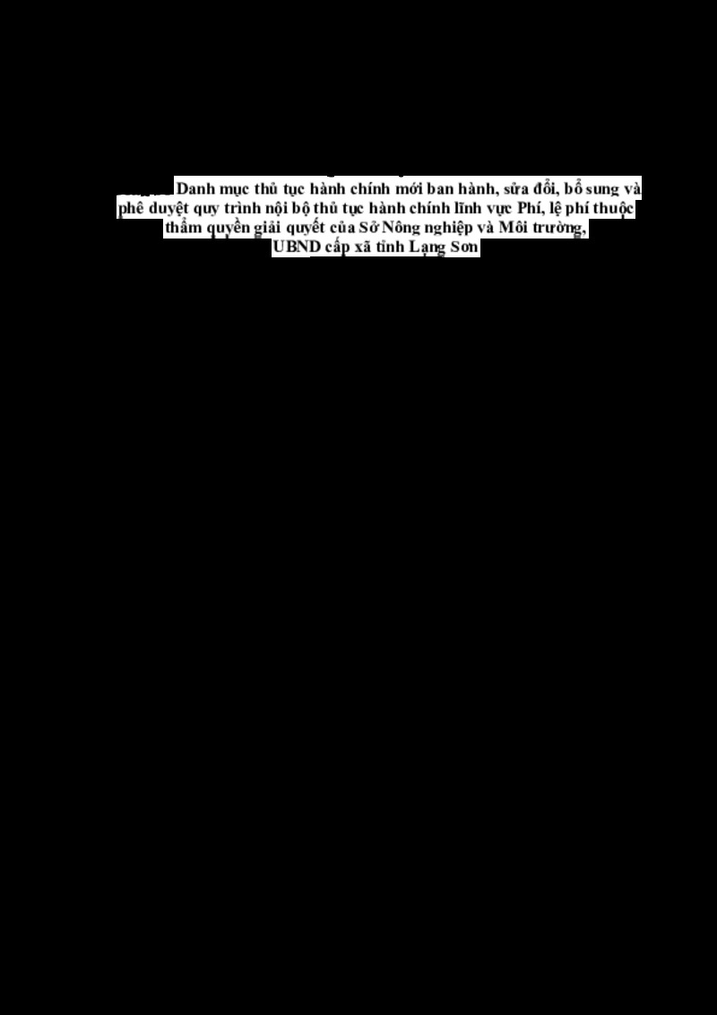 | Tiêu đề văn bản | QUYẾT ĐỊNH Công bố Danh mục thủ tục hành chính mới ban hành, sửa đổi, bổ sung và phê duyệt quy trình nội bộ thủ tục hành chính lĩnh vực Phí, lệ phí thuộc thẩm quyền giải quyết của Sở Nông nghiệp và Môi trường, UBND cấp xã tỉnh Lạng Sơn | ||
