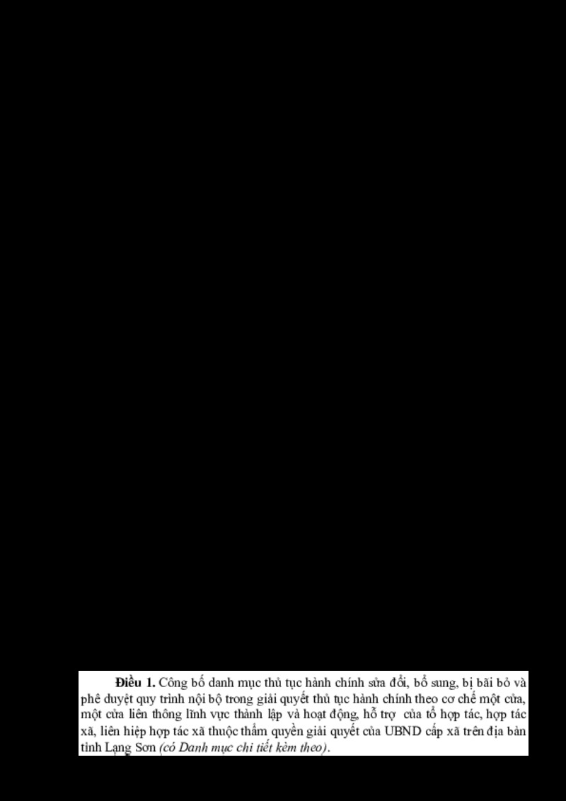 | Tiêu đề văn bản | QUYẾT ĐỊNH Công bố Danh mục thủ tục hành chính mới ban hành, sửa đổi, bổ sung và phê duyệt quy trình nội bộ thủ tục hành chính lĩnh vực Phí, lệ phí thuộc thẩm quyền giải quyết của Sở Nông nghiệp và Môi trường, UBND cấp xã tỉnh Lạng Sơn | ||