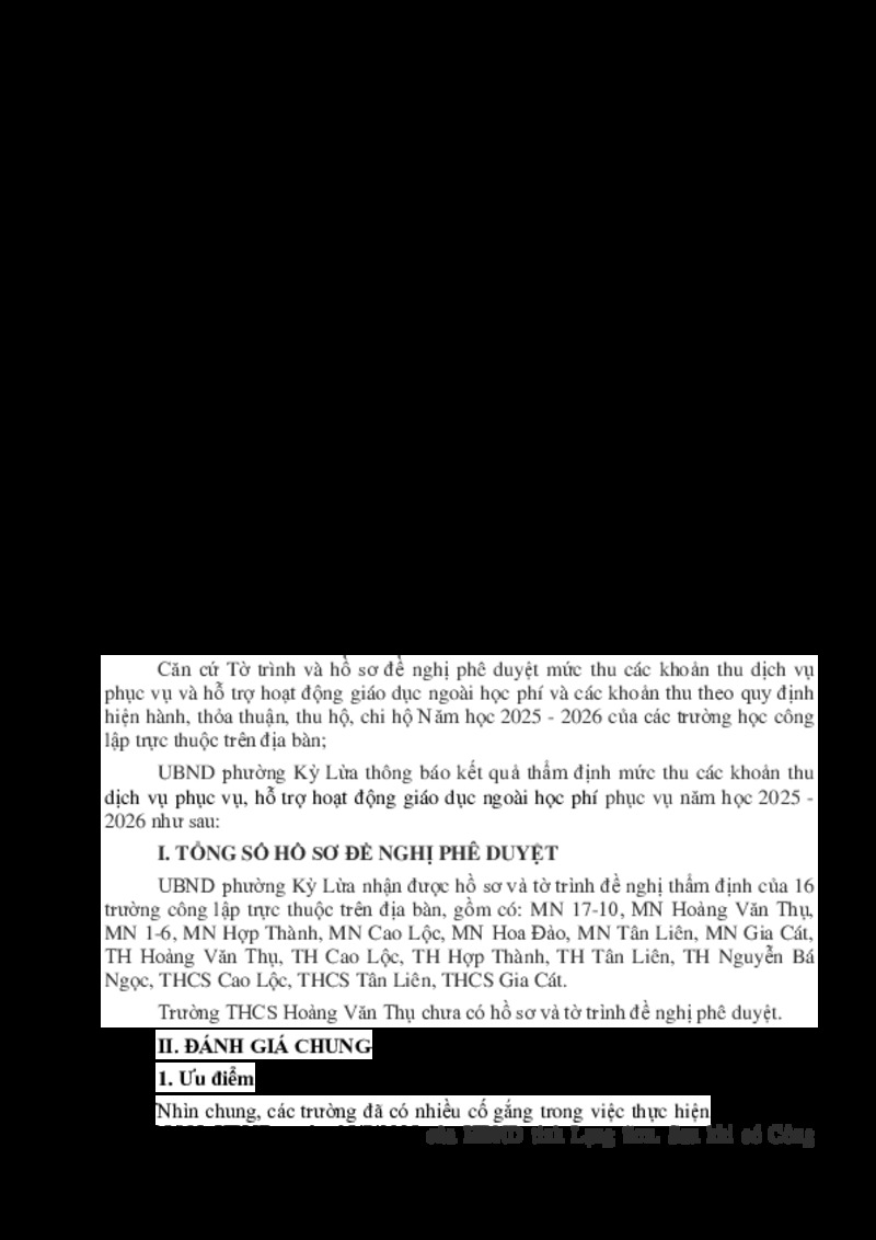 | Tiêu đề văn bản | THÔNG BÁO Kết quả thẩm định mức thu các khoản thu dịch vụ phục vụ, hỗ trợ hoạt động giáo dục ngoài học phí năm học 2025 - 2026 | ||