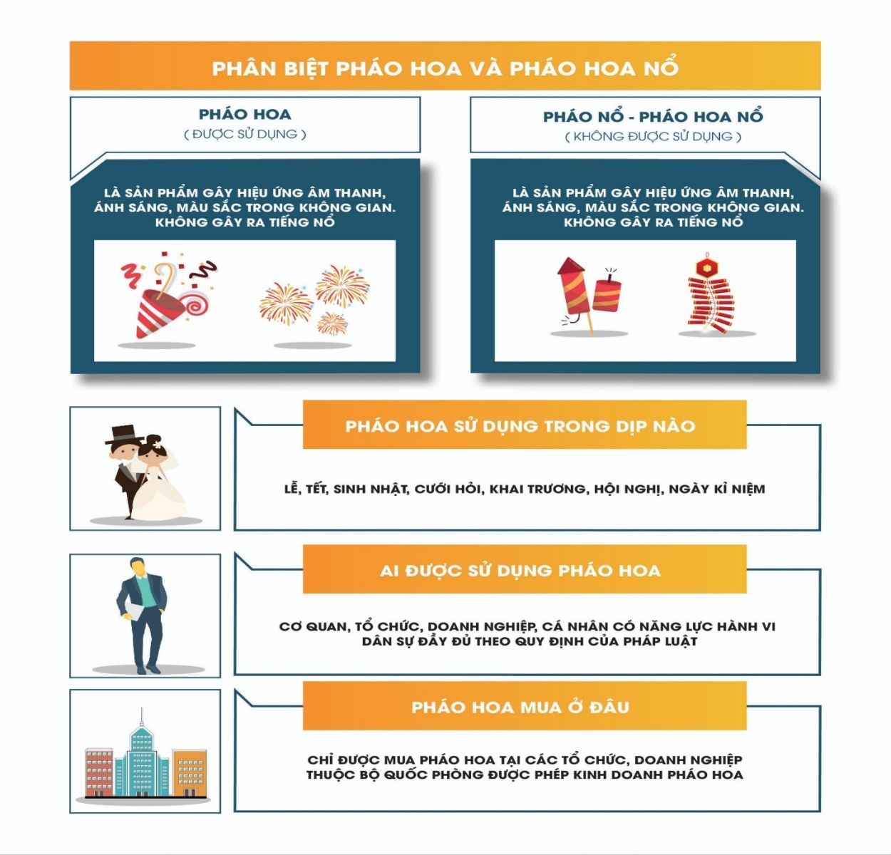 Tuyệt đối không sản xuất, mua bán, tàng trữ, vận chuyển, sử dụng trái phép các loại pháo nổ dưới mọi hình thức, đặc biệt trong đêm giao thừa và các ngày trước, trong, sau Tết.