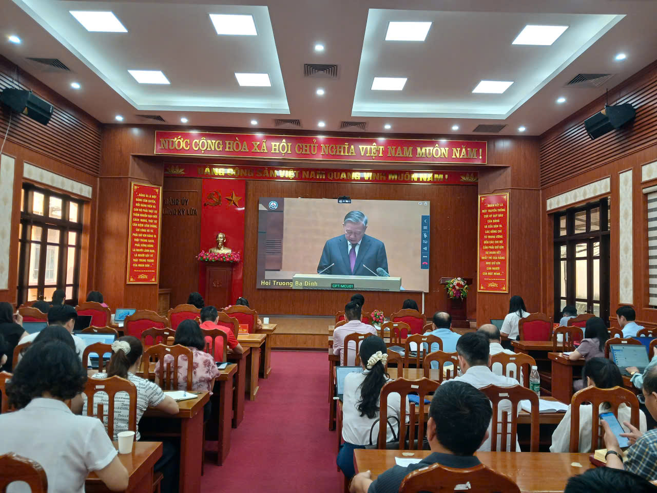 Dự tại điểm cầu Trung ương có đồng chí Tô Lâm, cùng các đồng chí Ủy viên Bộ Chính trị, Ủy viên Trung ương Đảng, lãnh đạo, nguyên lãnh đạo Đảng, Nhà nước qua các thời kỳ.