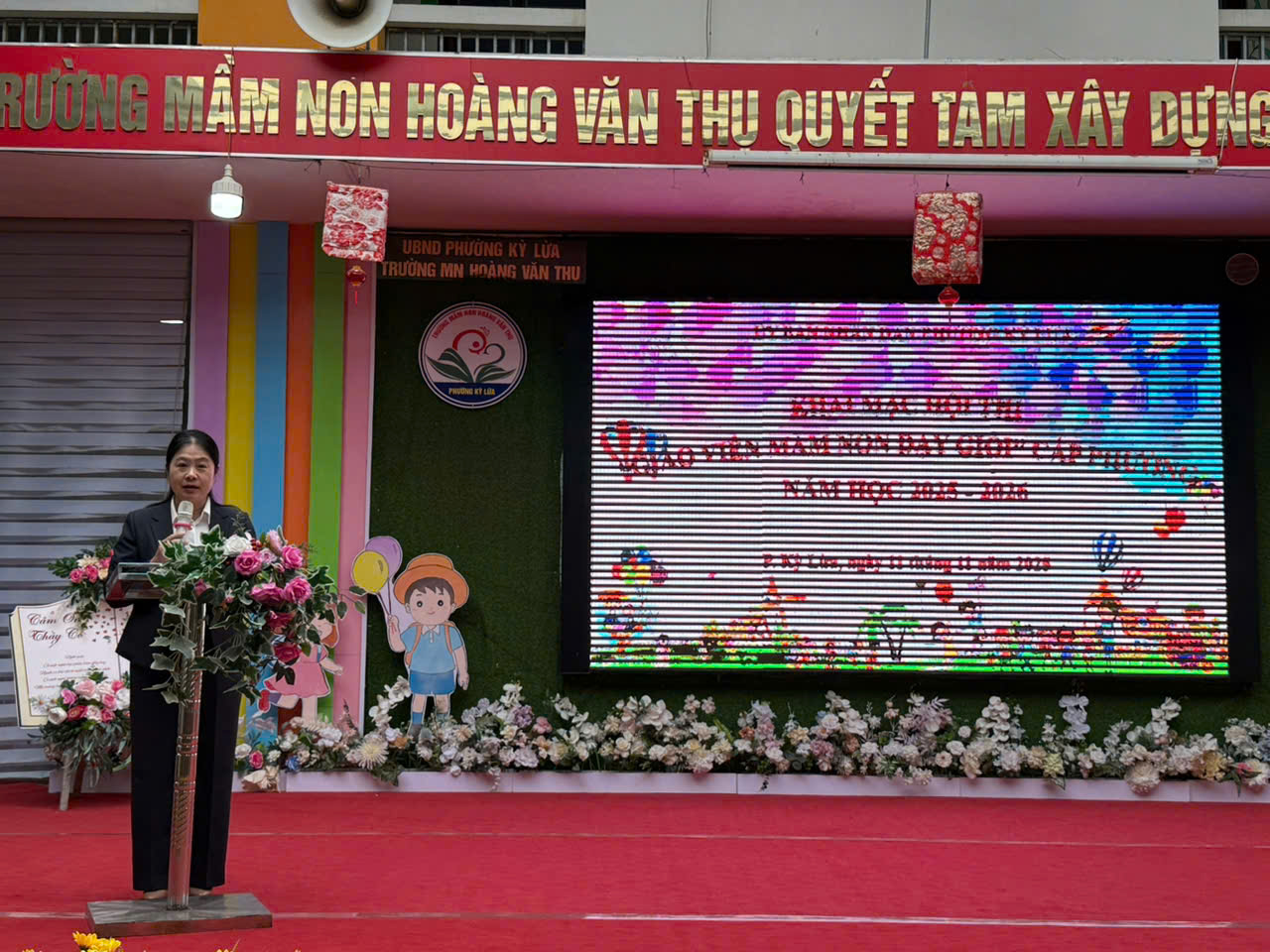 Phát biểu khai mạc hội thi, đồng chí Hồ Thị Tố Uyên, Ủy viên Ban Thường vụ Đảng ủy, Phó Chủ tịch UBND phường đánh giá cao sự chuẩn bị của các đơn vị và nhấn mạnh hội thi là hoạt động chuyên môn quan trọng nhằm nâng cao chất lượng giáo dục mầm non của địa phương.