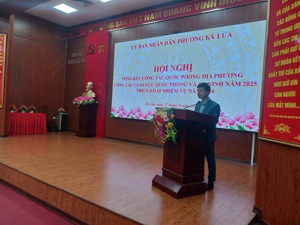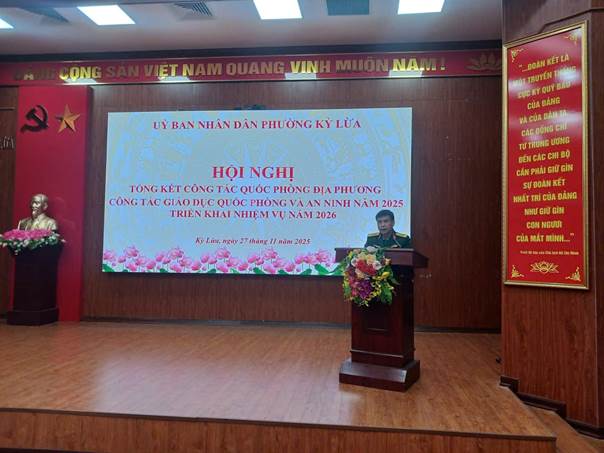 Chiều ngày 27/11/2025, Ủy ban nhân dân phường Kỳ Lừa tổ chức Hội nghị tổng kết công tác quốc phòng địa phương, công tác giáo dục quốc phòng và an ninh năm 2025, triển khai nhiệm vụ năm 2026.