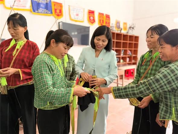 Đội may, thêu trang phục dân tộc truyền thống khối Hợp Tân có trên 30 thành viên. Nhằm bảo tồn và phát huy nghề may, thêu, dệt thổ cẩm của dân tộc Nùng, thời gian qua, các chị em phụ nữ trong khối đã thành lập nhóm truyền dạy nghề, nhận may, thêu trang phục truyền thống dân tộc Nùng. Những sản phẩm thêu, dệt thủ công truyền thống được thực hiện tỉ mỉ, công phu qua từng đường kim, mũi chỉ như áo, quần, túi, mũ thổ cẩm... Nghề may thêu không chỉ giúp chị em có thêm thu nhập mà còn góp phần bảo tồn, gìn giữ giá trị văn hóa truyền thống của dân tộc thiểu số trên địa bàn.