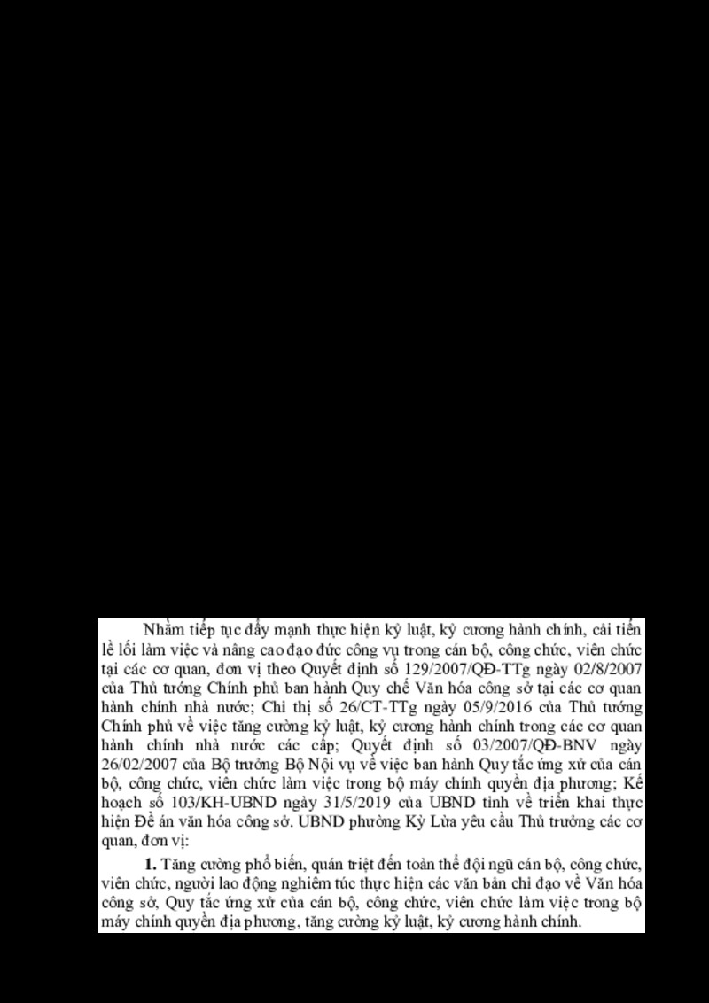 | Tiêu đề văn bản | V/v chấn chỉnh việc thực hiện kỷ cương hành chính của cán bộ, công chức, viên chức, người lao động trong các cơ quan, đơn vị | ||