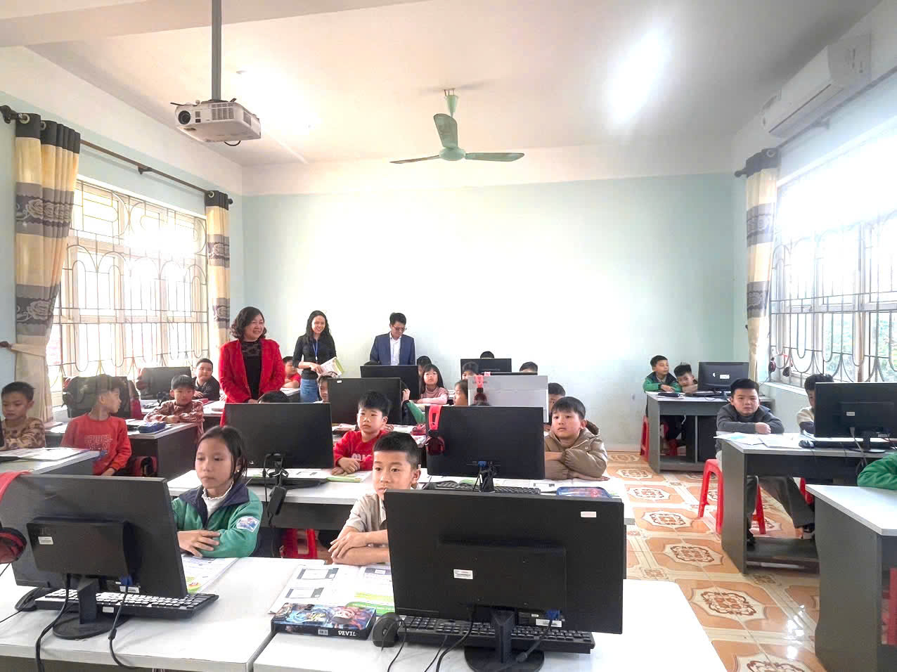Sau khi nghe báo cáo, Đoàn giám sát đã tiến hành khảo sát thực tế tại một số phòng học, phòng chức năng và khu vực cơ sở vật chất của nhà trường; đồng thời trao đổi, làm rõ thêm một số nội dung liên quan đến công tác quản lý, cập nhật dữ liệu tài sản, việc bảo quản và sử dụng trang thiết bị dạy học.