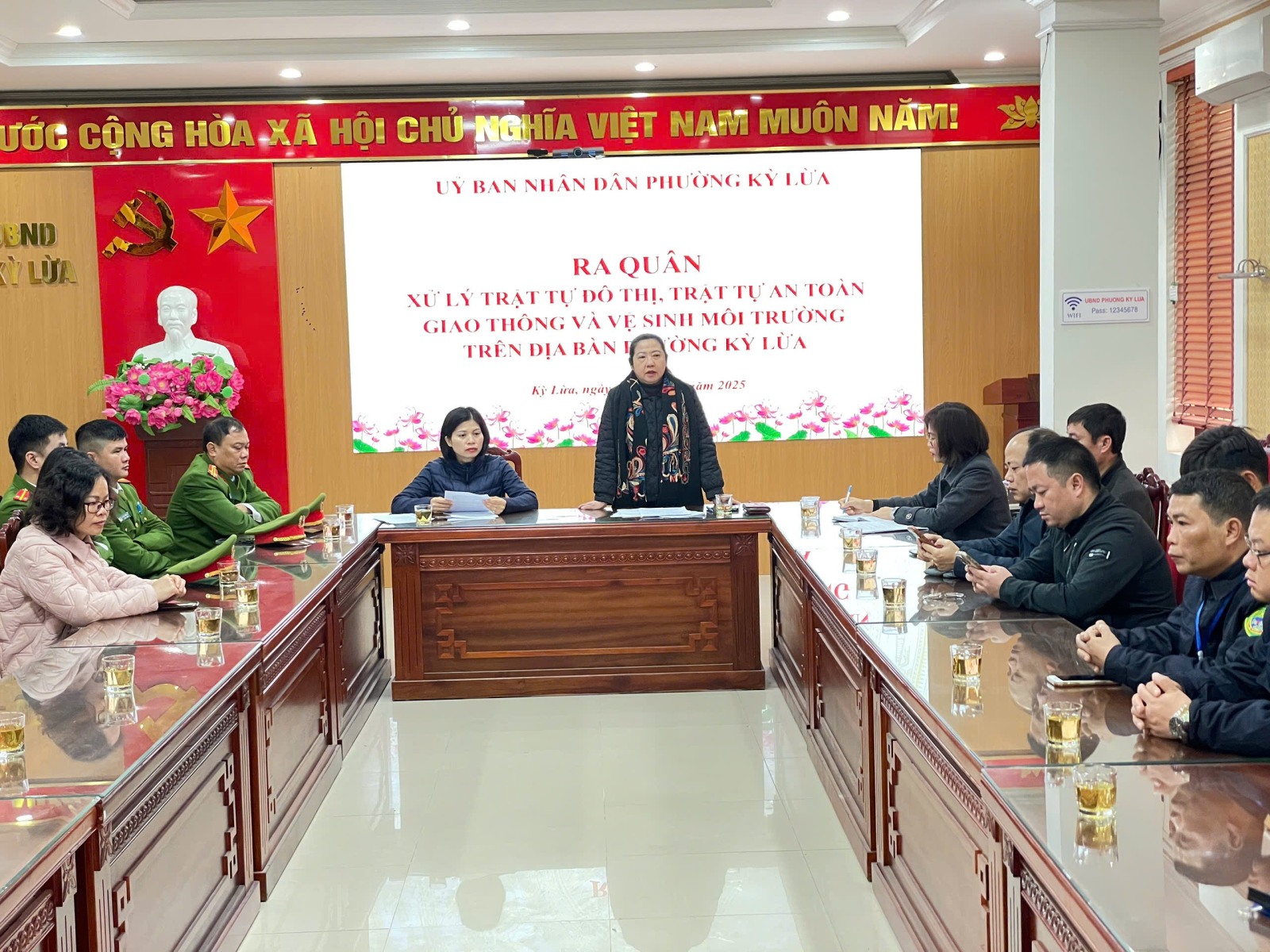 Đồng chí cũng yêu cầu bố trí lực lượng duy trì trực chốt tại các khu vực trọng tâm, trọng điểm như Quốc lộ 1, Quốc lộ 4B, các tuyến đường Trần Phú, Bắc Sơn, Trần Đăng Ninh, Bà Triệu, Lý Thường Kiệt, đường 3/2, khuôn viên 3/2, khu vực cổng chợ Giếng Vuông và cổng các trường học trên địa bàn phường; đồng thời thành lập và nhân rộng các mô hình tổ tự quản về trật tự đô thị, trật tự ATGT tại các khối phố.