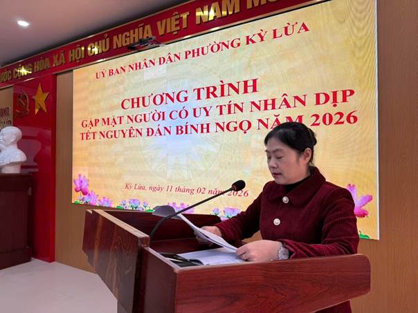 Tại chương trình, bà Hồ Thị Tố Uyên, Uỷ viên Ban Thường vụ Đảng uỷ, Phó Chủ tịch UBND phường đã báo cáo khái quát tình hình phát triển kinh tế - xã hội, quốc phòng - an ninh của địa phương trong năm 2025 và những nhiệm vụ trọng tâm năm 2026. Trong năm qua, mặc dù còn nhiều khó khăn, song với sự đoàn kết, nỗ lực của cả hệ thống chính trị và Nhân dân, phường Kỳ Lừa đã đạt được nhiều kết quả tích cực trên các lĩnh vực; an ninh chính trị, trật tự an toàn xã hội được giữ vững; đời sống vật chất, tinh thần của Nhân dân từng bước được nâng lên.
