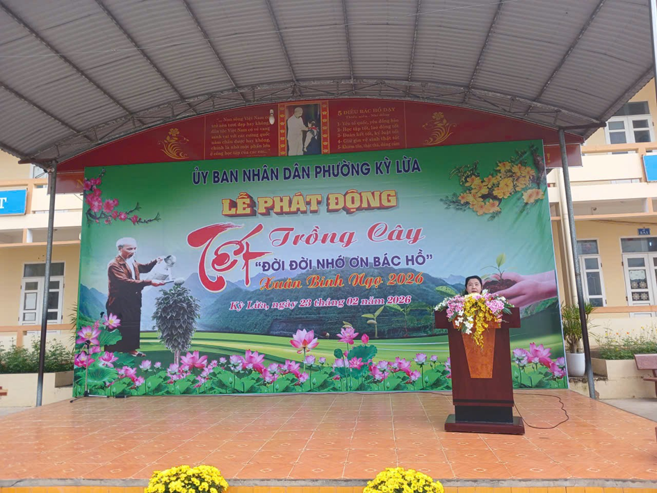 Sáng ngày 23/02/2026 UBND phường Kỳ Lừa Tổ chức Lễ phát động “Tết trồng cây đời đời nhớ ơn Bác Hồ” và ra quân đầu Xuân Bính Ngọ năm 2026 tại sân trường Tiểu học Tân Liên và đồi rừng của Hộ Đặng Văn Sáu, thuộc gia đình chính sách, khối An Rinh I, phường Kỳ Lừa.