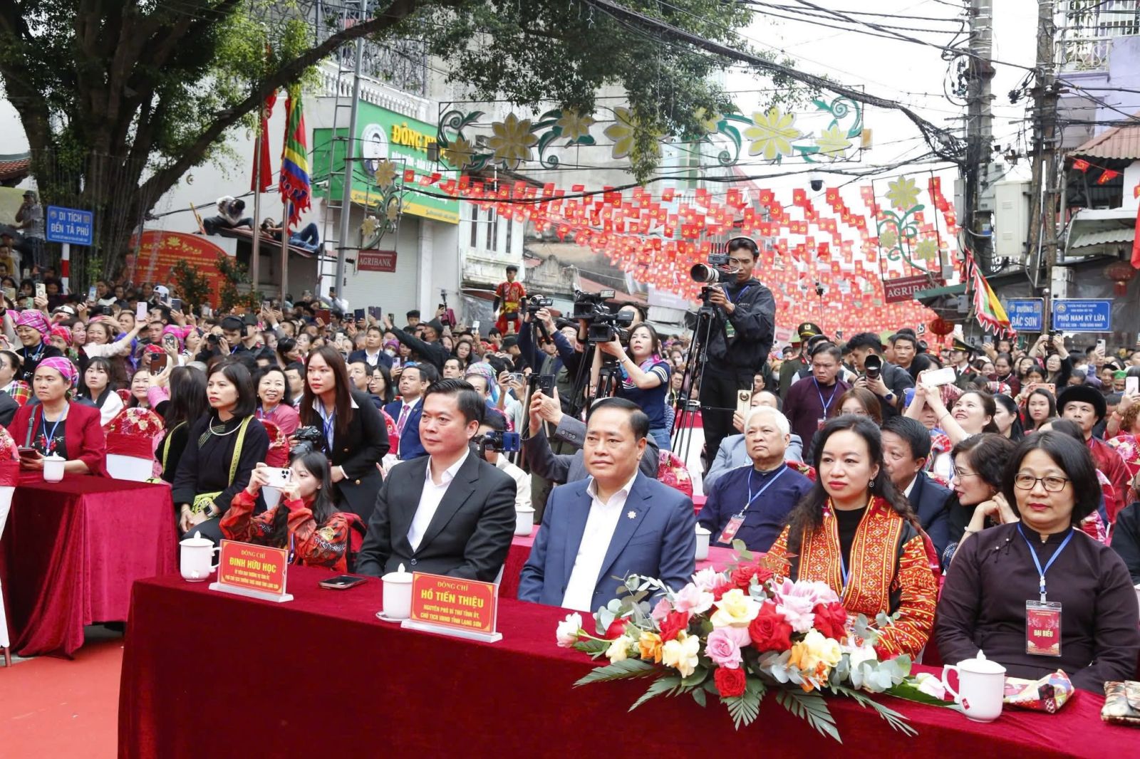 Không gian hội diễn ra trong không khí trang trọng nhưng không kém phần náo nức. Buổi lễ vinh dự có sự tham dự của các đồng chí lãnh đạo cấp cao tỉnh Lạng Sơn: Đồng chí Đinh Hữu Học, Ủy viên Ban Thường vụ Tỉnh ủy, Phó Chủ tịch Thường trực UBND tỉnh; Đồng chí Đoàn Thanh Sơn, Phó Chủ tịch UBND tỉnh; Cùng dự còn có các đồng chí nguyên lãnh đạo tỉnh qua các thời kỳ, đại diện các sở, ban, ngành, lãnh đạo các địa phương lân cận và đặc biệt là hàng vạn người dân cùng du khách thập phương đã đổ về đây để chiêm ngưỡng nét đẹp văn hóa truyền thống này.