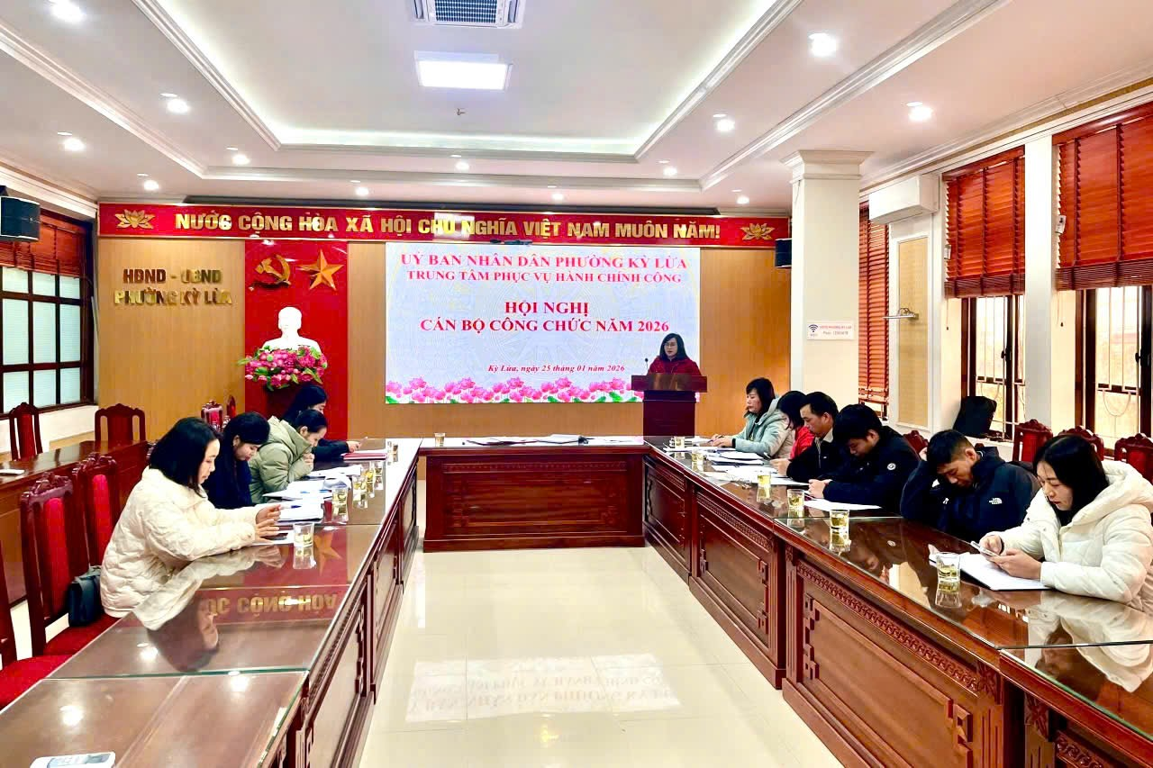 Chiều ngày 25/01/2026, Trung tâm Phục vụ Hành chính công phường Kỳ Lừa đã trang trọng tổ chức Hội nghị cán bộ, công chức năm 2026. Hội nghị diễn ra trong không khí nghiêm túc, dân chủ, đoàn kết và thể hiện tinh thần trách nhiệm cao của toàn thể cán bộ, công chức.