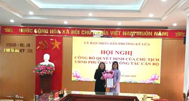 Sáng ngày 13/02/2026, tại Hội trường Ủy ban nhân dân phường Kỳ Lừa, tổ chức Hội nghị công bố và trao Quyết định về công tác cán bộ cho Trung tâm phục vụ hành chính công.