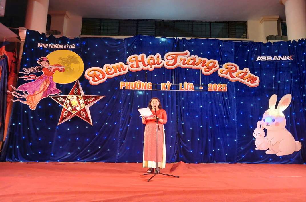 Phát biểu khai mạc đồng chí Vi Thị Quỳnh Mai – Phó Bí thư Đảng ủy, Chủ tịch UBND phường Kỳ Lừa, đây là ngày tết truyền thống “Đêm hội Trăng rằm” một bản sắc dân tộc, tuần phong mỹ tục trong dân gian ngày xưa vào (ngày 15/8 âm lịch) hàng năm là tết trung thu cổ truyền của dân tộc việt Nam, là một ý nghĩa to lớn dành cho các em thiếu nhi, nhằm sự tôn vinh quảng bá các sản phẩm, thương hiệu hàng hóa, nét đẹp văn hóa ẩm thực trên địa bàn.