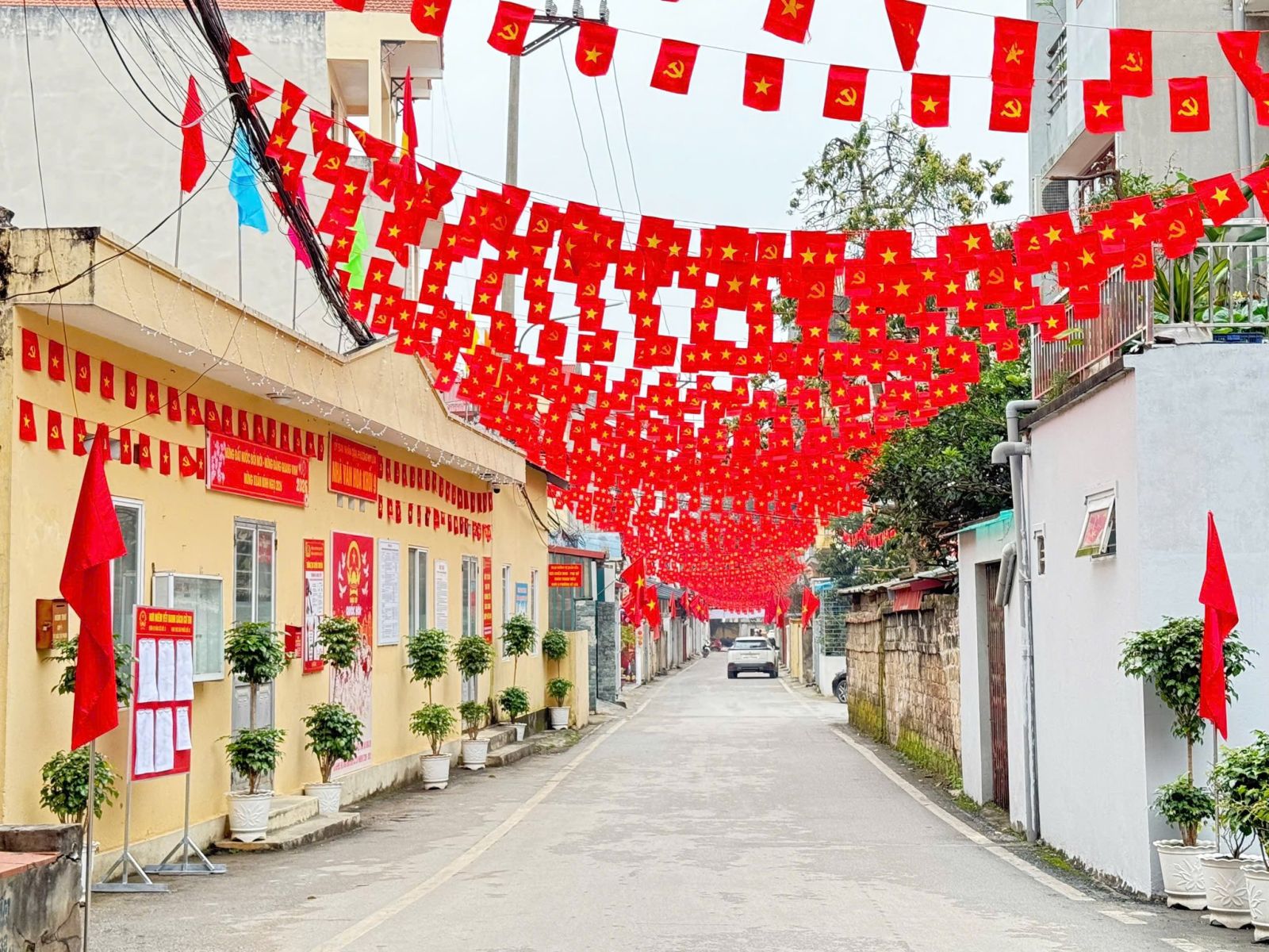 Không chỉ ở các trục đường lớn, không khí ngày hội đã lan tỏa sâu rộng đến từng ngõ nhỏ, khối phố, sắc đỏ rực rỡ tại các khối phố, nhân dân đồng loạt treo cờ Tổ quốc theo quy cách thống nhất, tạo nên những "tuyến đường cờ" thẳng tắp, uy nghiêm. Trang trí sáng tạo, các nhà văn hóa khối phố – nơi sẽ diễn ra hoạt động bỏ phiếu – được trang hoàng lộng lẫy bằng băng rôn, khẩu hiệu "Tất cả vì mục tiêu dân giàu, nước mạnh, dân chủ, công bằng, văn minh". Tinh thần tự giác, người dân tích cực tham gia dọn dẹp vệ sinh trước cửa nhà, trồng thêm hoa tại các ban công, góp phần làm cho diện mạo phường trung tâm thêm phần khang trang.