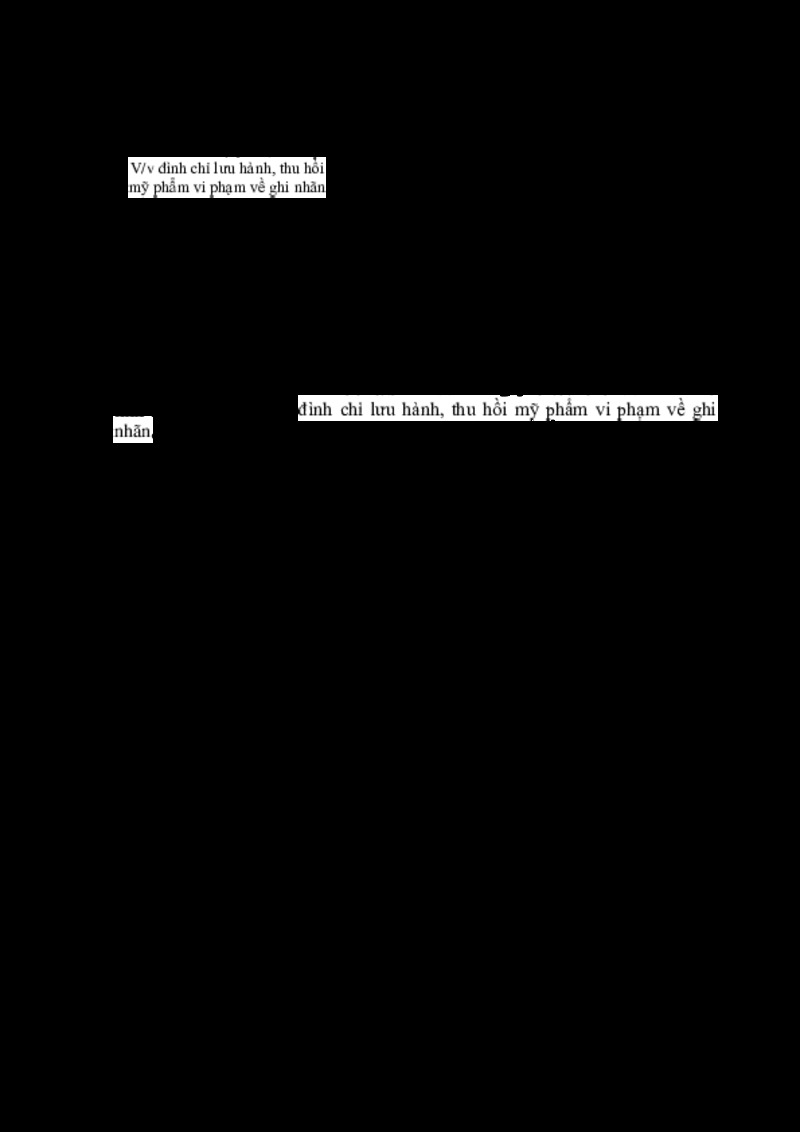 Tiêu đề văn bản | Công văn đình chỉ lưu hành, thu hồi mỹ phẩm vi phạm về ghi nhãn | ||