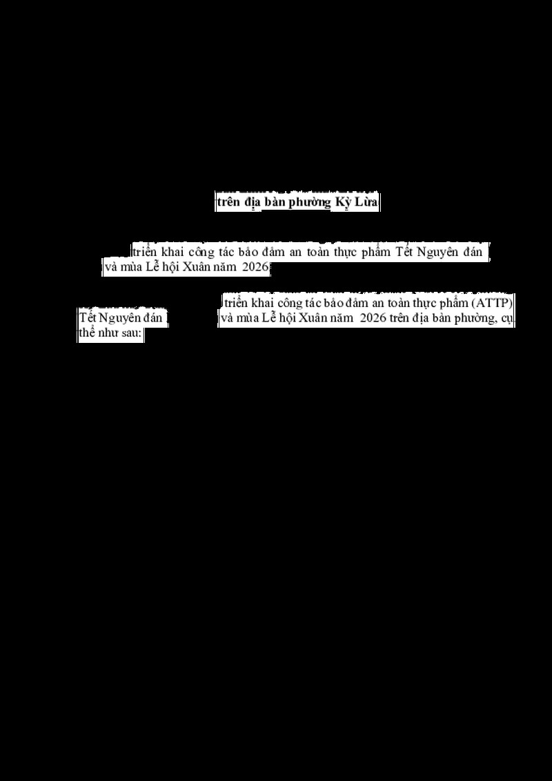 | Tiêu đề văn bản | KH triển khai đảm bảo VSATTP Tết Bính Ngọ va mùa Lễ hội Xuân năm 2026 phường Kỳ Lừa | ||