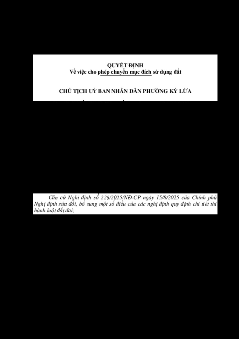 File đính kèm | QUYẾT ĐỊNH Về việc cho phép chuyển mục đích sử dụng đất | ||